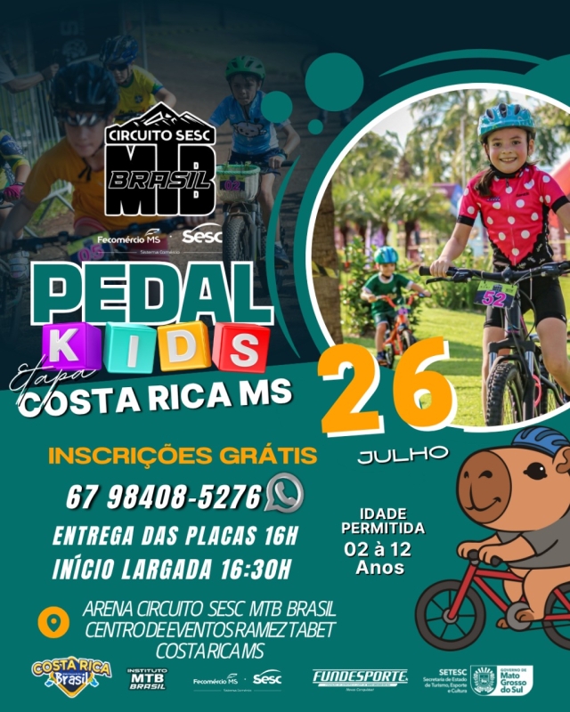 Com paisagens deslumbrantes e um ambiente acolhedor, Costa Rica se prepara para receber atletas de todo o Brasil, prometendo um dia inesquecível de desafios e superação. Não perca a chance de fazer parte deste grande evento!