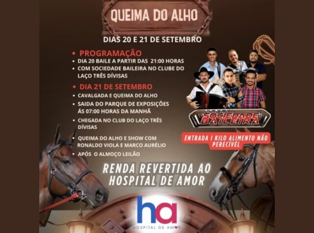 Costa Rica realiza Ação Solidária em prol do Hospital de Amor nos dias 20 e 21 com baile, cavalgada e queima do alho