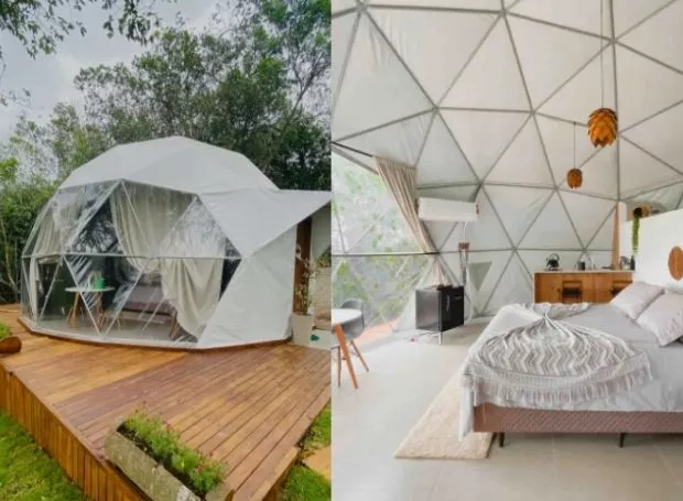 Já são vários os exemplos de sucesso de domos geodésicos no estado, como o Domo da @cabanabenites e o domo @portaldasestrelas_domo, que oferecem hospedagem (glamping) de alta qualidade, proporcionando uma experiência singular e confortável para os hóspedes, sem perder a conexão com a natureza.