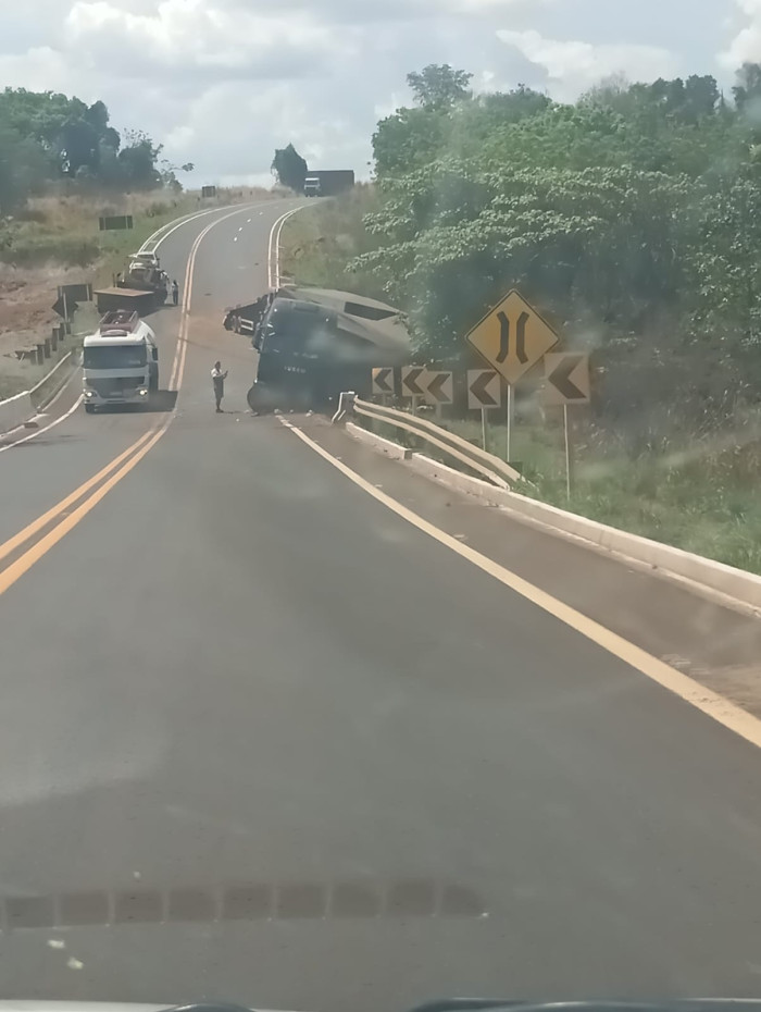Apesar do susto e dos danos materiais significativos no veículo, não houve feridos. O trânsito no local chegou a ficar parcialmente interrompido durante o atendimento e a retirada do bitrem, mas já foi normalizado.