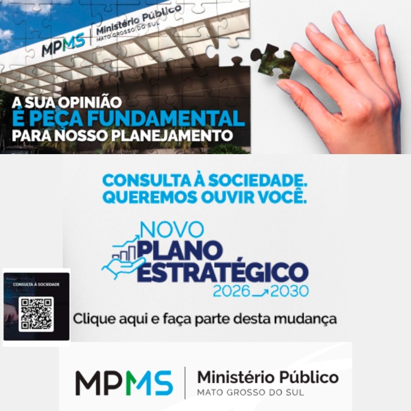 Para garantir que o novo plano esteja alinhado com as expectativas da população, o MPMS lançou uma consulta pública. Esta iniciativa visa captar a percepção da sociedade sobre a atuação do Ministério Público em suas diversas áreas, além de coletar sugestões que ajudem a definir as prioridades estratégicas para o próximo ciclo.