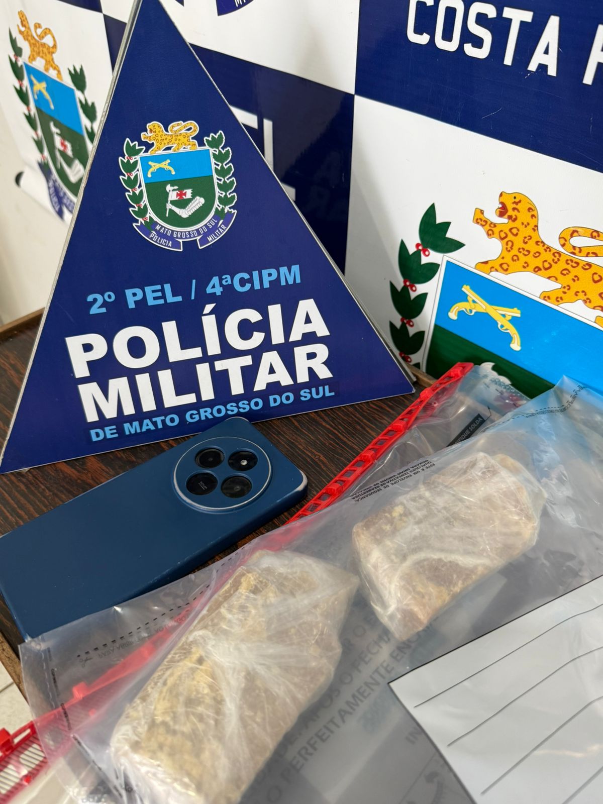 Uma mulher de 33 anos foi presa pela Polícia Militar de Costa Rica após ser flagrada transportando entorpecente em um veículo, na Avenida Kendi Nakai.