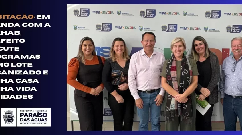 A reunião teve como foco o fortalecimento das parcerias existentes e o andamento de projetos habitacionais em desenvolvimento em Paraíso das Águas, com o objetivo de ampliar o acesso da população à moradia digna. Também participaram da agenda o secretário municipal de desenvolvimento, Wilson Matheus, a assessora de convênios Luciana Aimi e a assessora jurídica Laís Fernanda.