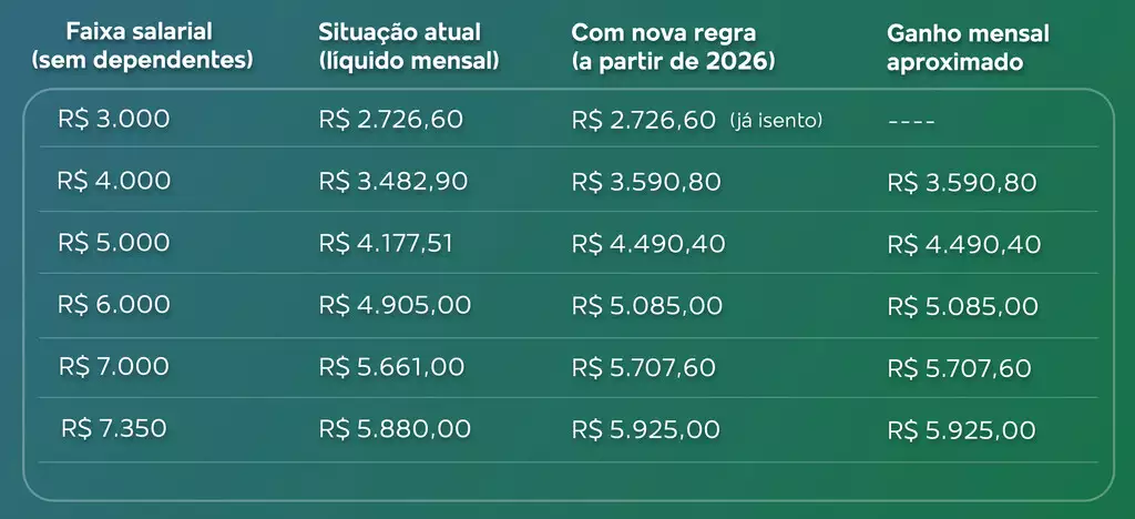 A partir de janeiro de 2026 – As novas regras valem para rendimentos recebidos a partir de janeiro de 2026, incluindo o 13º salário. A declaração de 2025 ainda seguirá as normas antigas.